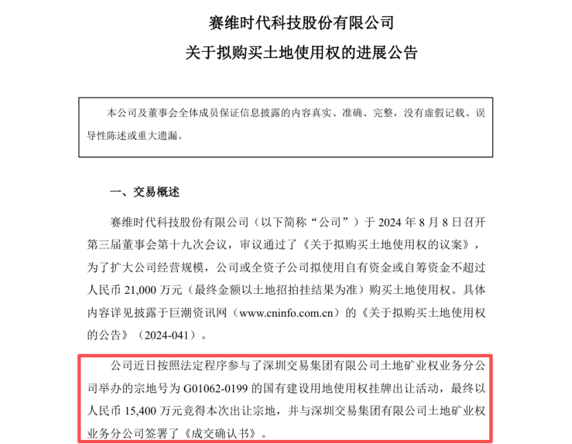 值得注意的是,此次购地资金来源于赛维的自有资金,且交易流程完全合规。早在 2024 年 8 月,赛维就已通过董事会决议,计划斥资不超过 2.1 亿元购买土地使用权,最终 1.54 亿的成交价低于预算上限,体现了其资金使用的审慎性。
