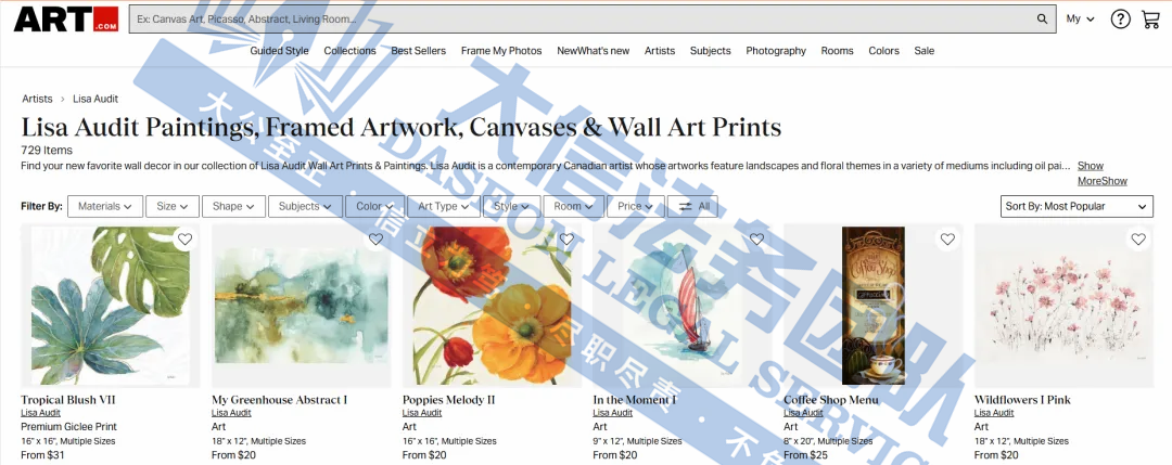 原告是加拿大当代艺术家,运用油画、丙烯颜料及钢笔墨水等多种媒介进行创作的当代艺术家。自幼热爱绘画的Lisa Audit,在从事壁纸设计师职业之前学习过平面设计和艺术,现已从业二十多年,其作品被广泛用于文具、布料及卫浴配件领域,涵盖家居用品系列包含餐具、文具、厨房纺织品、床上用品、浴室用品、地毯及墙面装饰。