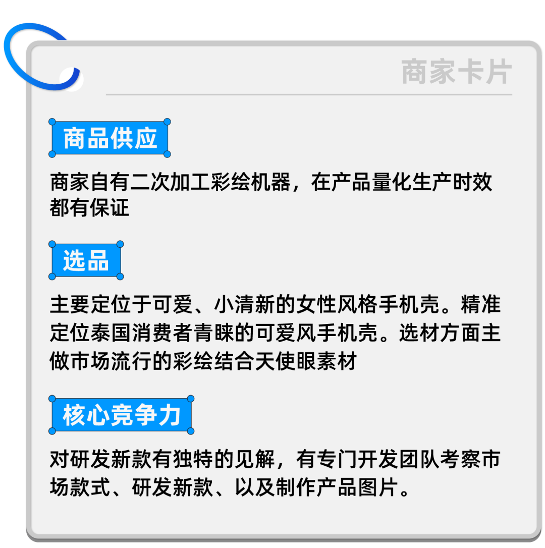 迅速开发了更多风格产品,并且根据不同风格商品分类加入不同店铺,打造风格化垂直度极高的手机壳店群,精准定位消费目标。聚焦统一风格的商品店铺加上精准用户群体,也让半标品的手机壳往非标的方向推进,消费者更愿意为自己心仪的风格、样式付出额外消费,也就大大增加商品在市场溢价空间。