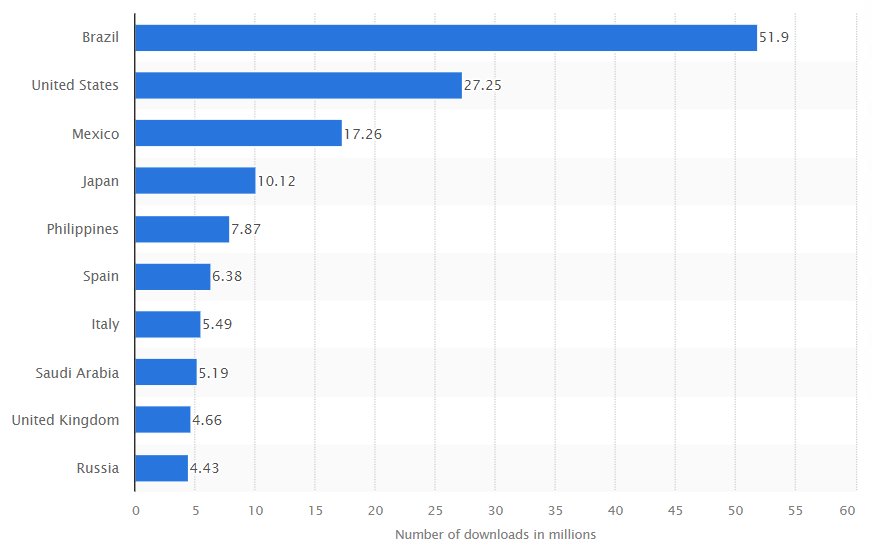 事实上,巴西也是Shein在全球市场中,下载量最多的一个市场。据Statista数据,2022年,Shein在巴西实现5200万次下载,创下年下载量新高。其次是美国,2022年有超过2700万次下载。