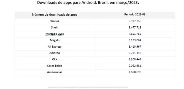 巴西3月购物应用下载TOP10,Shein火爆依旧