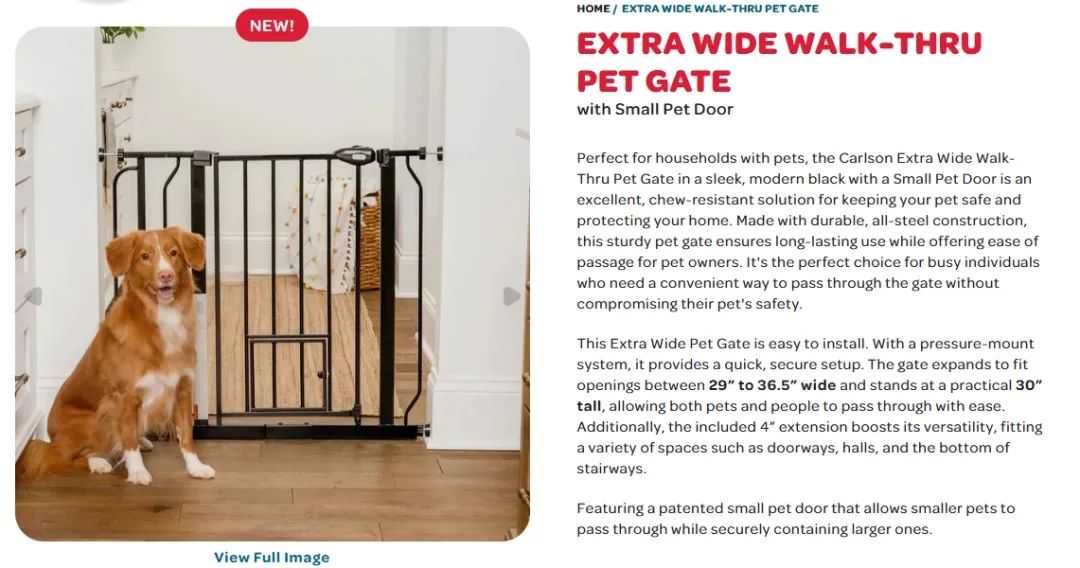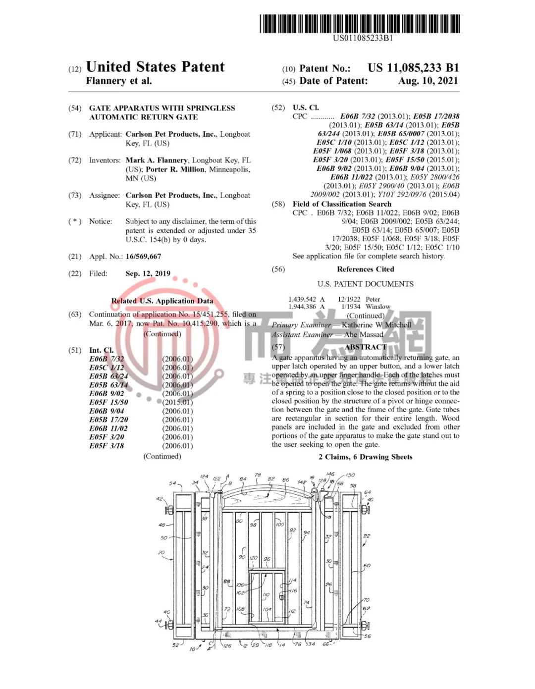 原告Carlson Pet Products 是一家专注宠物用品的家族企业,从2006年起就一直为宠物家庭提供安全实用的解决方案。他们的无弹簧自动回位宠物门采用创新设计,不需要传统弹簧,靠重力或磁力就能自动安静关闭,既安全又耐用。这款门采用坚固的金属材料,防咬防锈,宽度可调节,30英寸的高度方便人和宠物轻松通过。