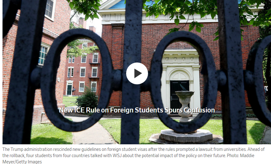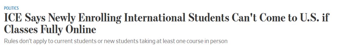 秋季学期临近,移民和海关执法局(ICE)周五发布声明,禁止那些新学期打算全部在网上完成学业的国际新生入境。这一规定不会影响已经在美国高校就读的国际学生。