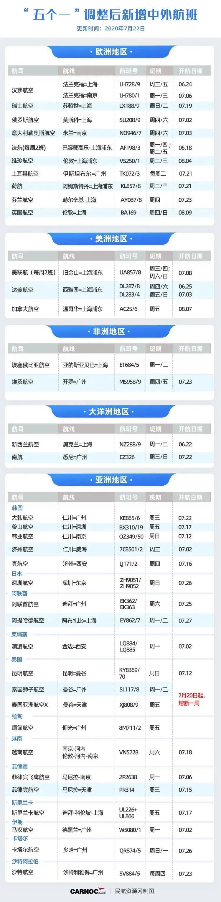 根据7月23日最新消息,中国民航局、外交部、卫生健康委、海关总署、国家移民局联合下发《关于落实国际航班调整工作的通知》。