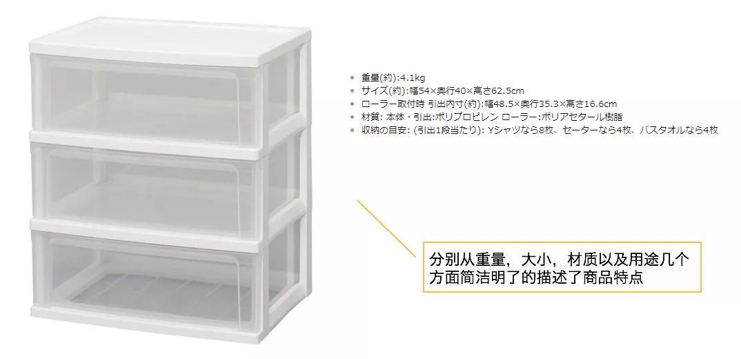 作为最早被顾客看到的说明性字段,五点描述应该用最简练的语言描述商品最大的特性。