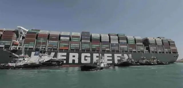 2021年3月23日,“长赐号”“卡”在了埃及苏伊士运河里,造成河道严重堵塞。