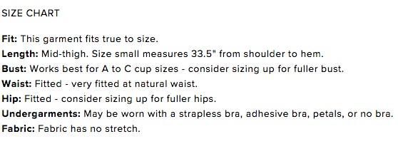 以美国在线女装品牌Lulus为例,在该品牌的每一个产品页面中,他们都提供了关于服装商品的详细信息,如对于服装的描述、具体尺寸、尺寸合身细节甚至是模特的信息,这样消费者就可以根据图片中看到的尺寸和体型作为参考标准。