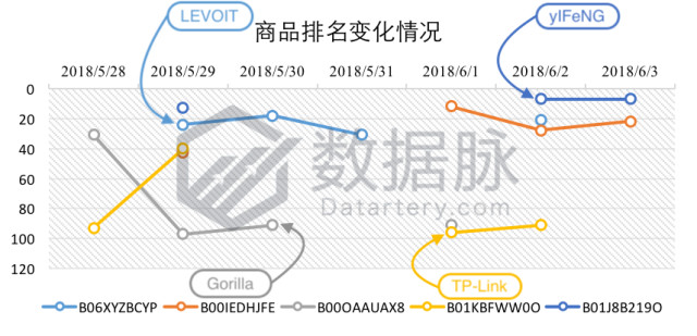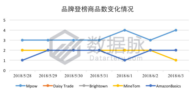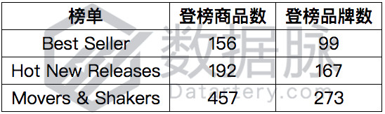 根据上周 Movers & Shakers 榜单上各个品牌下商品的登榜次数,我们对登榜的品牌进行了排序,其中排名靠前的五个品牌如下所示: