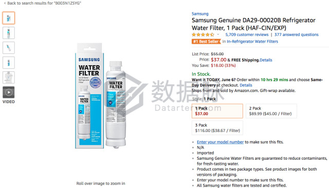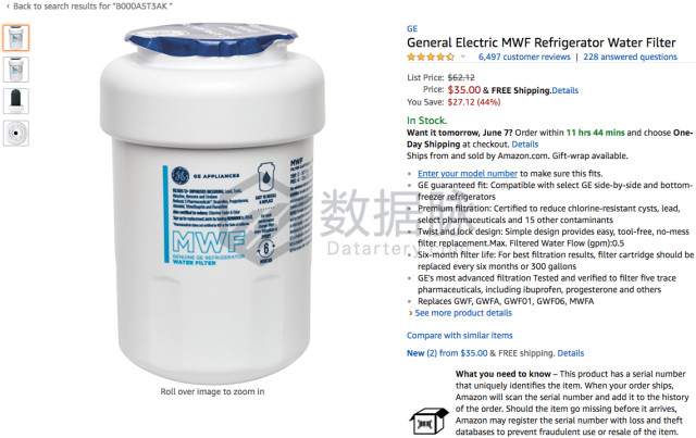 而位列商品综合排名第二至第五的均是冰箱滤水器,分别来自以下品牌:Samsung、Ge、EveryDrop by Whirlpool、Frigidaire,骆 探长(shujumai.com)认为,随着夏季的到来,天气的持续高温,冰箱相关产品进入使用高峰期,而冰箱滤水器作为冰箱的重要部件也迎来利好的销售时期。