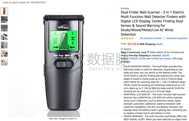 此外,来自品牌VIVREAL的螺柱探测器榜单表现高开低走,但凭 借9.86的优秀平均排名位列商品综合排名第四,自上期分析以来,该款商品的评论量从13.0条上升32.0条,平均星级从4.6星上升到4.7星,因此其后 续市场表现值得期待。
