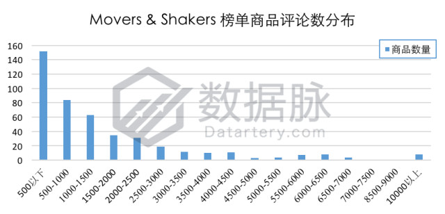 在上周Tools & Home Improvement品类的Movers & Shakers榜单中,单个商品拥有的最大评论数为29645.0条,最小评论数为0.0条,平均评论数为1836.43条,评论平均星级为4.33星。骆探长 (shujumai.com)发现,相比上期分析,平均评论数有小幅度上升,评论平均星级则保持不变;在上榜的商品中,评论数分布在500条以下的商品最多, 占比达33.26%;在上周登榜Movers & Shakers榜单的商品中,有8款商品的评论数超过10000条,占上榜商品总数的1.75%。