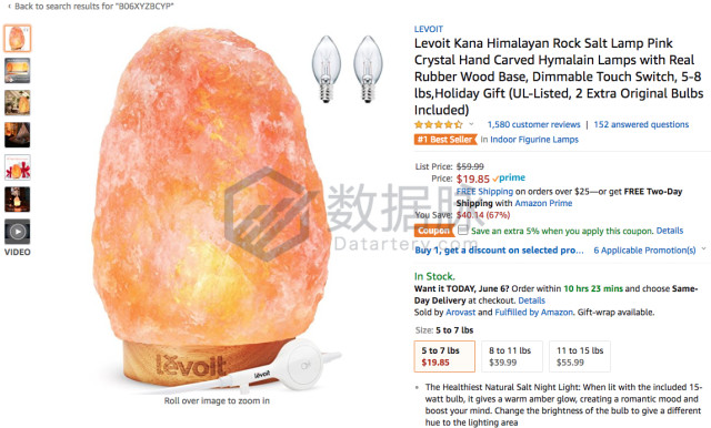 在上周Tools & Home Improvement品类的Movers & Shakers榜单中,根据商品的登榜次数及平均排名进 行综合排名,在位列综合排名前五的商品中,骆探长(shujumai.com)发现,来自品牌LEVOIT的喜马拉雅盐灯在上周四次进入榜单前50,以平均排 名23.5的领先优势位列商品综合排名第一,其单日最大涨幅为107.0%;