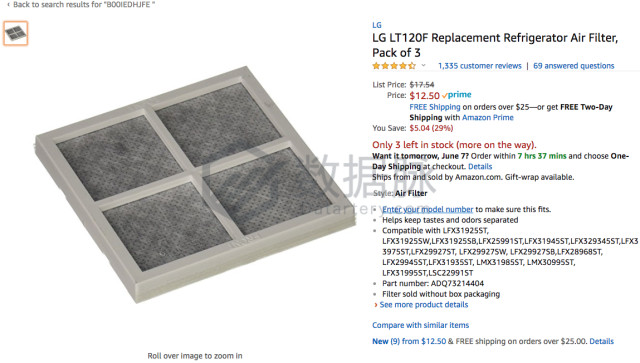 来自品牌Lg的冰箱空气过滤器同样表现优秀,在上周也四次进入榜单前50,以平均 排名29.4的优秀成绩位列商品综合排名第二,