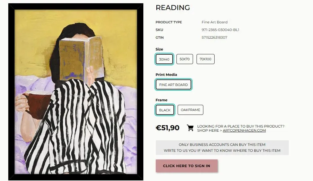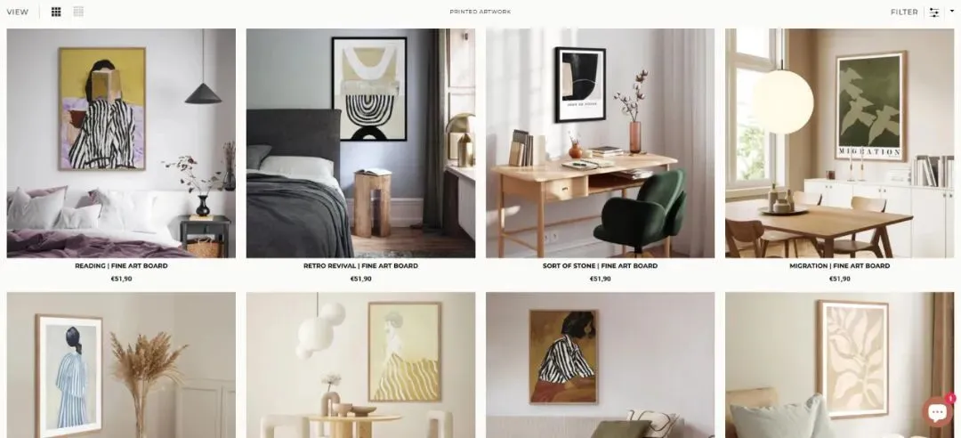 其核心团队由内部签约的艺术家与设计师组成,从手绘原作到大幅面数字微喷,所有创作均在哥本哈根的工作室内完成。凭借对色彩体系与材质语言的精准把控,Malerifabrikken不仅运营着成熟的自主藏品系列,更频繁受邀为欧洲一线家具与室内设计品牌开发专属的定制艺术方案。