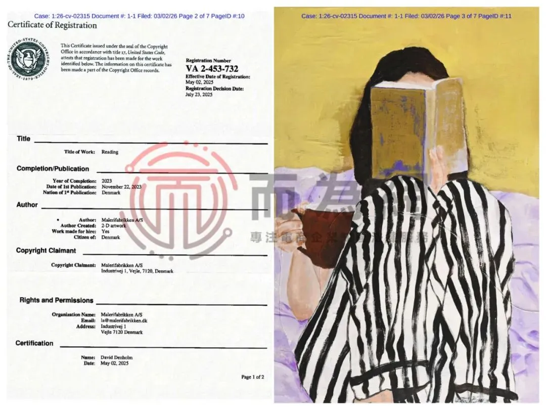 原告Malerifabrikken A/S是一家位于丹麦的艺术与设计机构。自1999年创立以来,工作室始终致力于打破高端艺术与日常生活的界限,将北欧室内设计的潮流转化为触手可及的视觉作品。