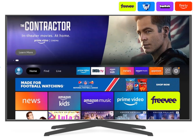 场景:通过联网电视(如Amazon Freevee、Fire TV)触达家庭用户,广告形式多为不可跳过的全屏视频,与优质影视内容(如体育直播、原创剧集)结合展示。