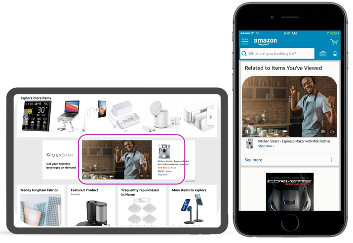 在亚马逊的一项内部研究中,我们发现,同时使用视频和展示广告的广告活动的详情页面浏览转化率提高了 4 倍,购买转化率提高了 2.5 倍。