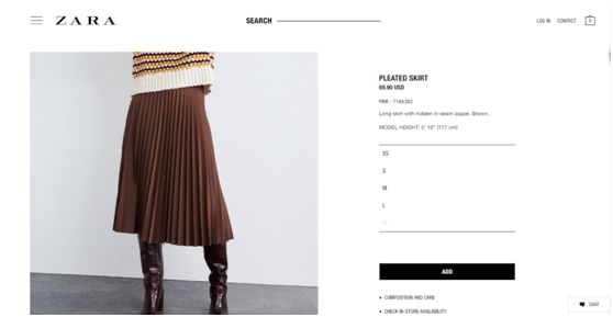 在Pinterest上,到目前为止针织百褶裙的搜索量已经增加了75%。如下图,是ZARA的一款针织百褶裙,一上架就几近售空,这是一个值得关注的款式。