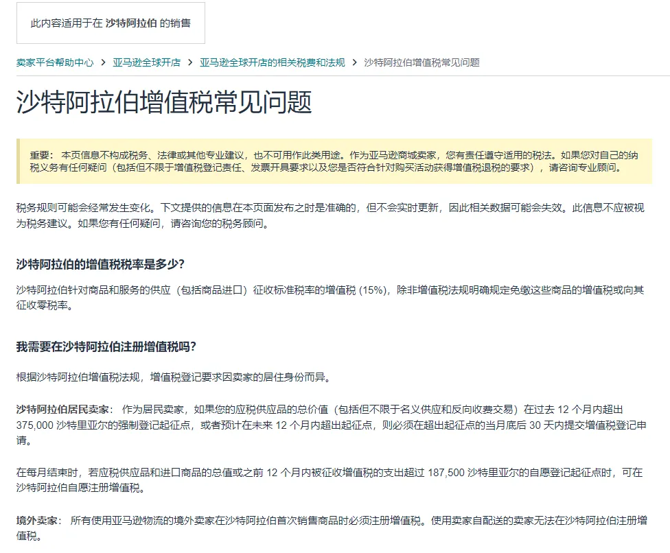 亚马逊中东站卖家注意!沙特税务与海关总局(ZATCA)税务罚款豁免政策将于2025年12月31日截止,未完成沙特VAT合规的卖家,自2026 年1月1日起平台将直接代扣代缴15%增值税!