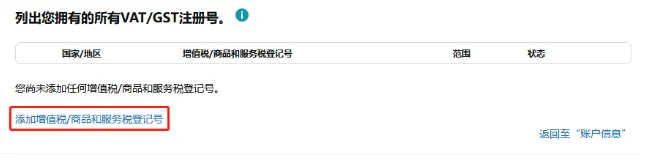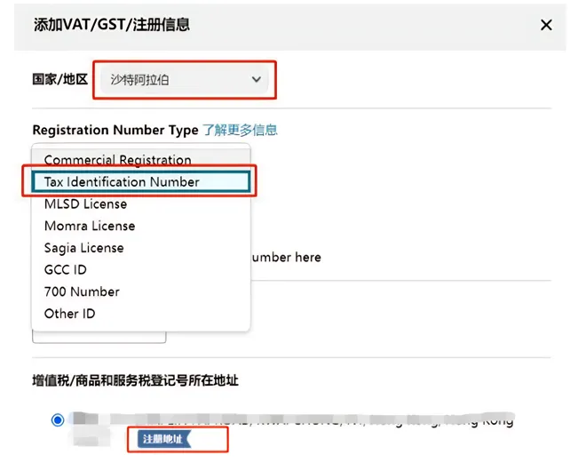 完成沙特VAT注册并获取VRN号后,登录亚马逊后台,通过【卖家平台】→ 【设置】→【税务设置】→【添加增值税/商品和服务税登记号】路径完成上传操作。
