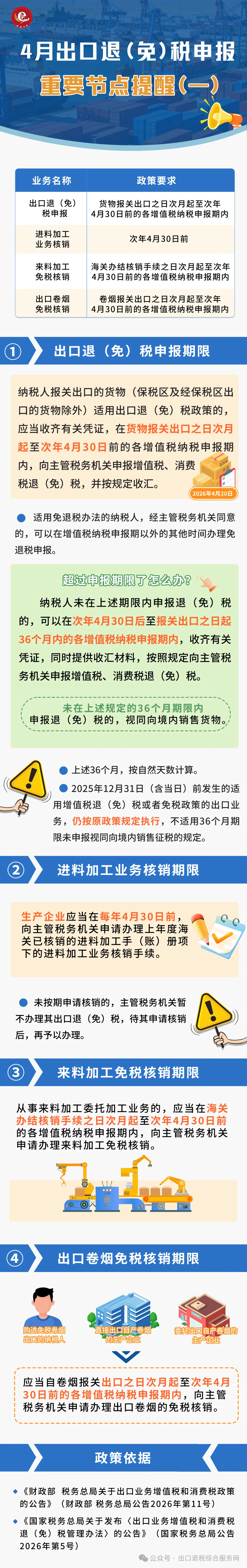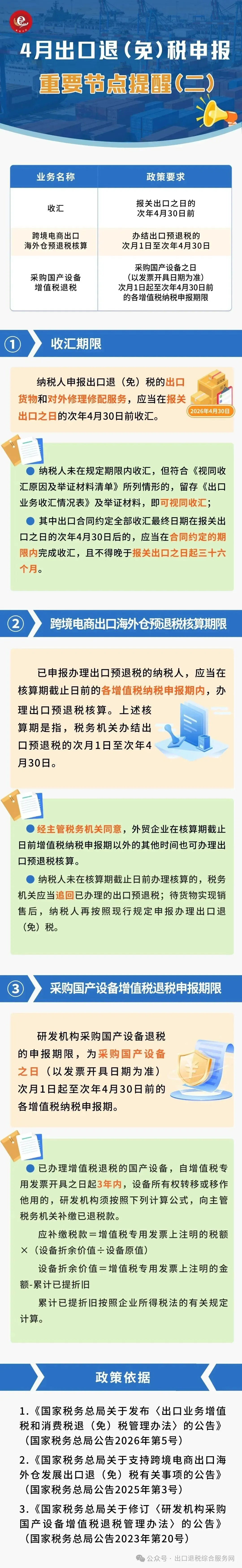 税务局发布丨4月出口退(免)税申报重要节点提醒