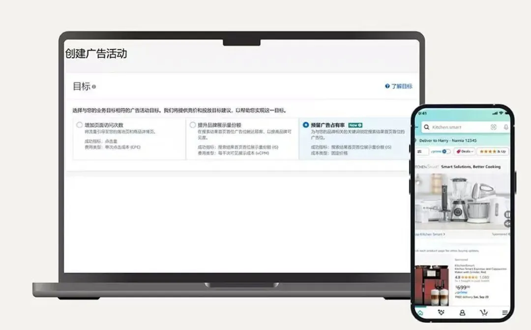 设置路径:亚马逊广告平台 → 创建品牌推广活动 → 在“目标”中选择“预留广告占有率”。