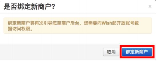 点击“绑定新商户”,并登录Wish商户平台账号,进行授权操作。