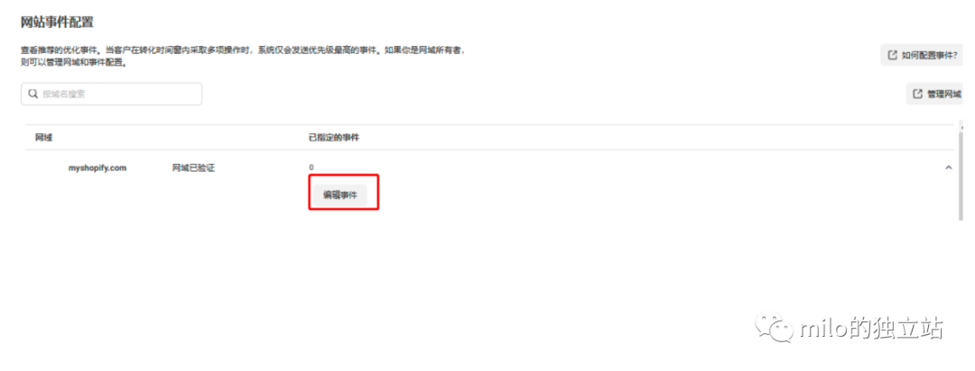 2. 选择刚刚已验证的网域,点击【编辑事件】