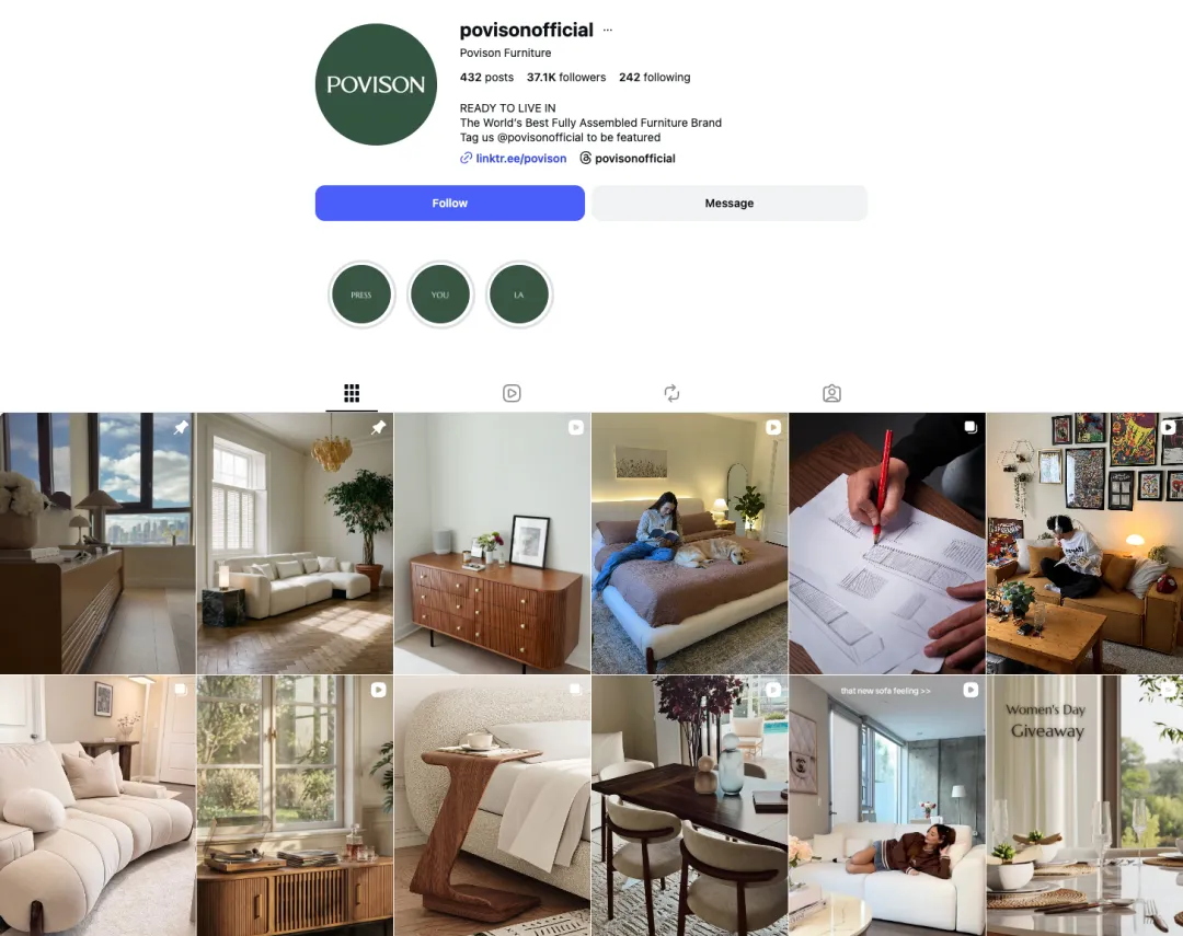 在这个环节中,POVISON首先做的就是将自家账号经营得有声有色。