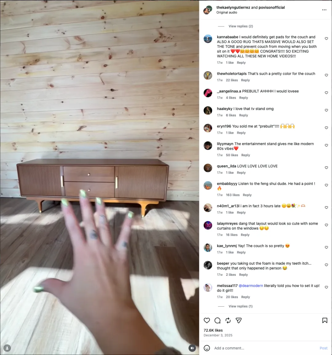 最终这条视频收获了92.4万次播放、7.2万次点赞和200条评论,数据反馈相当优秀!评论区的氛围也非常正向和积极,本次合作为POVISON带来的转化绝对超出了品牌的预期。