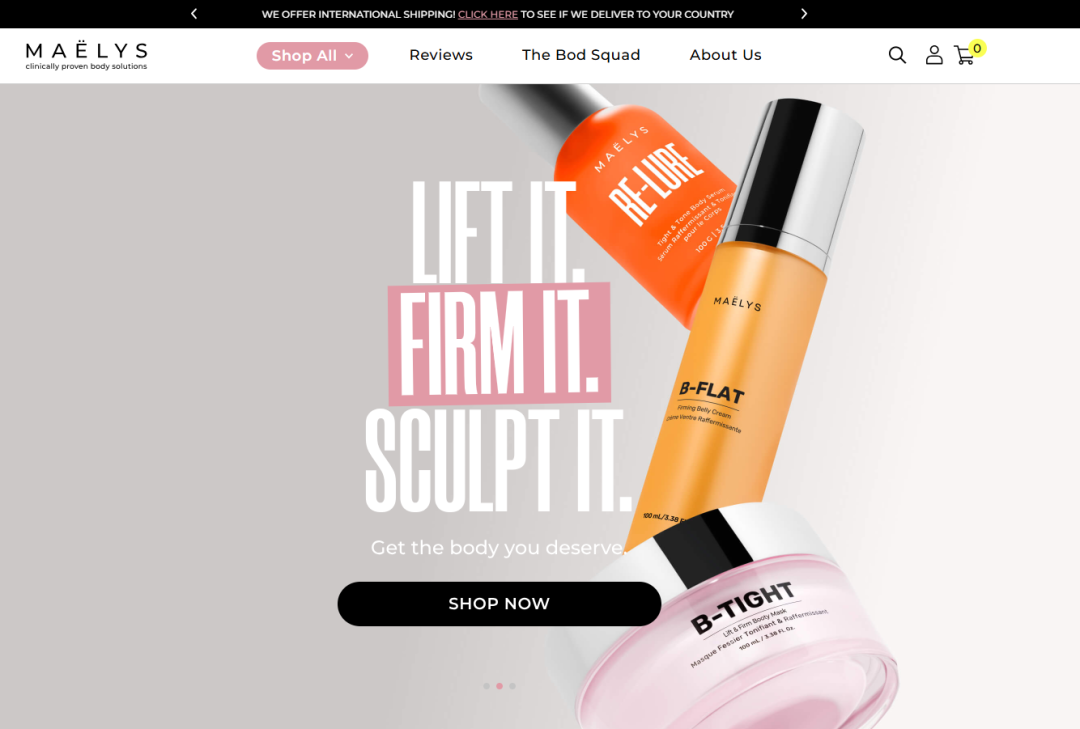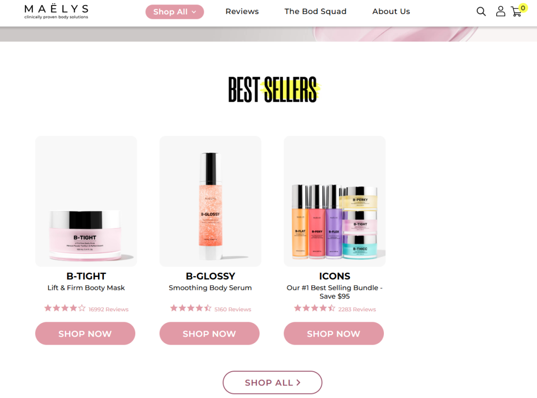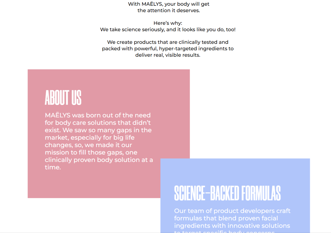 Maelys 成立于2017 年,总部位于美国纽约,是一个专注身体护理领域的 DTC(直接面向消费者) 美容品牌。创始人洞察到主流个护产品未充分覆盖女性一些重要身体部位的护理需求,精准锁定一些青年女性和年轻妈妈等群体对身体皮肤紧致的关注,以“部位专属护理”为核心差异化切入市场。该品牌目前主要通过官网、丝芙兰以及与 Ulta Beauty 合作等电商及零售渠道触达全球消费者。