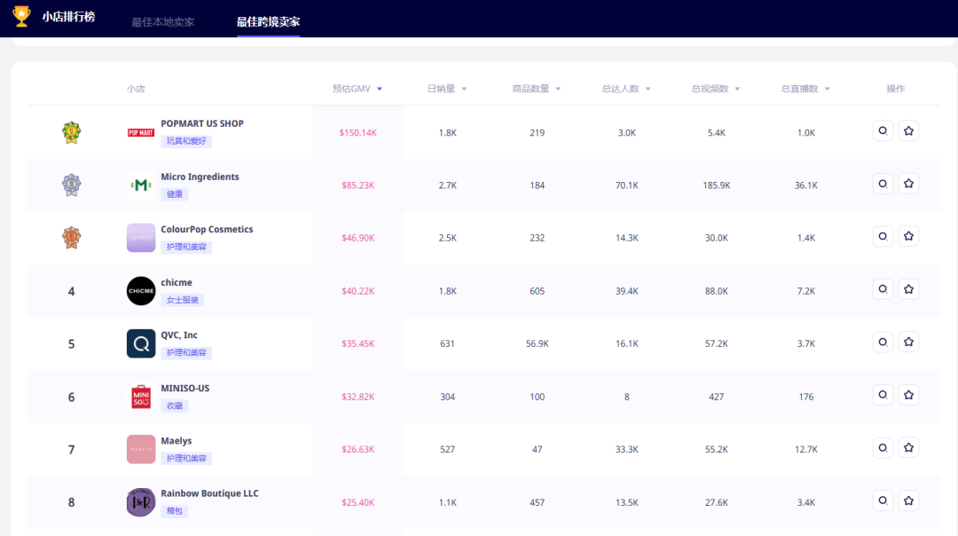 根据EchoTik数据显示,2025年5月26日,Maelys的预估GMV达2.6万+美元,排名在最佳跨境卖家排行榜第七名。