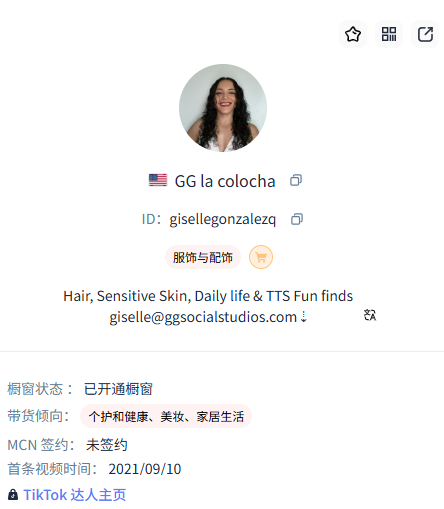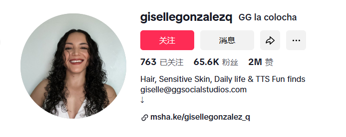@gisellegonzalezq是一名6.5万+粉丝的TikTok博主,获赞共两百万+,带货倾向于个护和健康、美妆、家居生活。