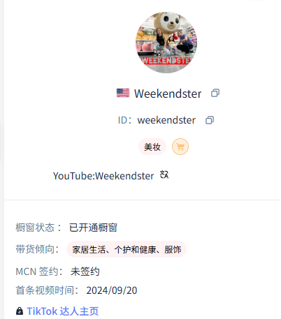 @weekendster是TikTok上一名不到两万粉丝的尾部博主,带货倾向于家居生活、个护和健康、服饰。