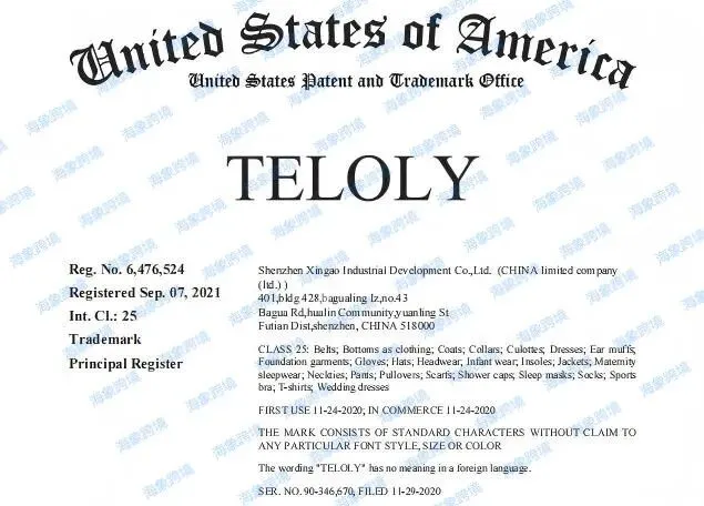 原告是一家英国公司,原告名下 TELOLY 商标主要注册在第25类服装鞋帽:皮带;下装;外套;衣领;裙裤;连衣裙;耳罩;塑身衣等。