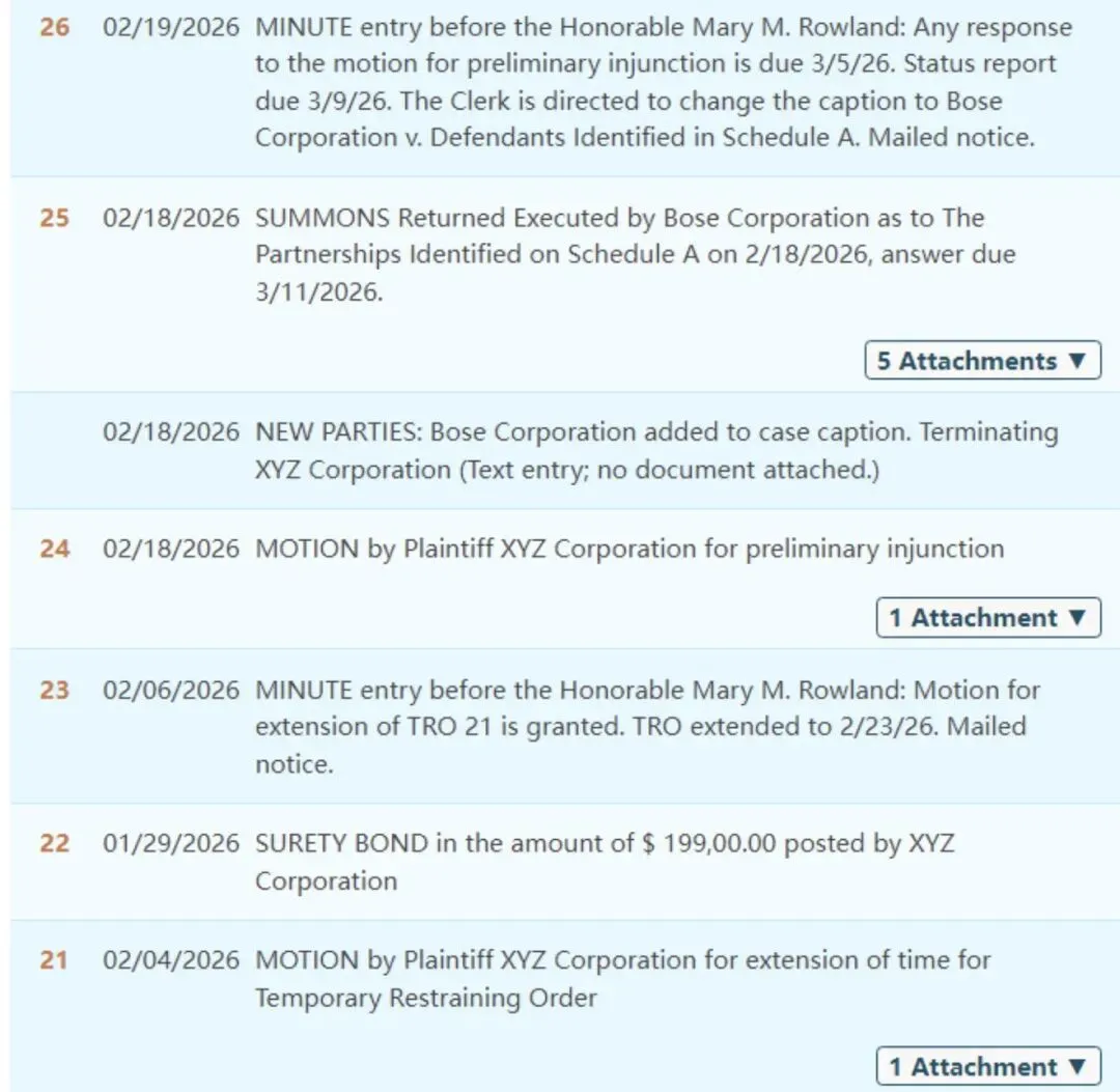 【26-cv-00011】Bose发起隐匿维权,已有199家店铺遭TRO冻结!跨境卖家速看避雷!