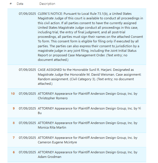 此案为版权维权,目前已有119 家店铺被冻结,2025年4月至5月期间,原告发起4起版权维权,共涉及 21 项服装版权,跨境卖家一定要注意检索下架,未经授权不得擅自使用,以下是涉案版权的具体信息,可供卖家参考,避免TRO侵权损失!