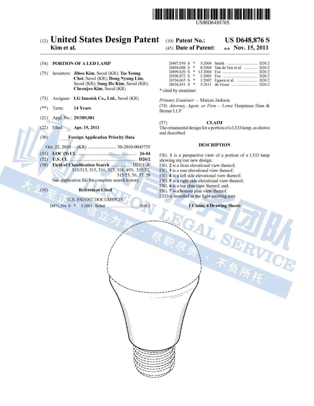 此案为6月初发起的匿名专利维权,目前已有13家店铺被冻结,涉及一项外观专利,专利号:D648876,于2011年11月15日下证,值得注意的是,该专利有效期为14年,即2025年11月15日失效,原告在专利到期前发起维权,跨境卖家一定要注意检索下架,未经授权不得擅自使用,以下是涉案专利的具体信息,可供卖家参考,避免TRO侵权损失!