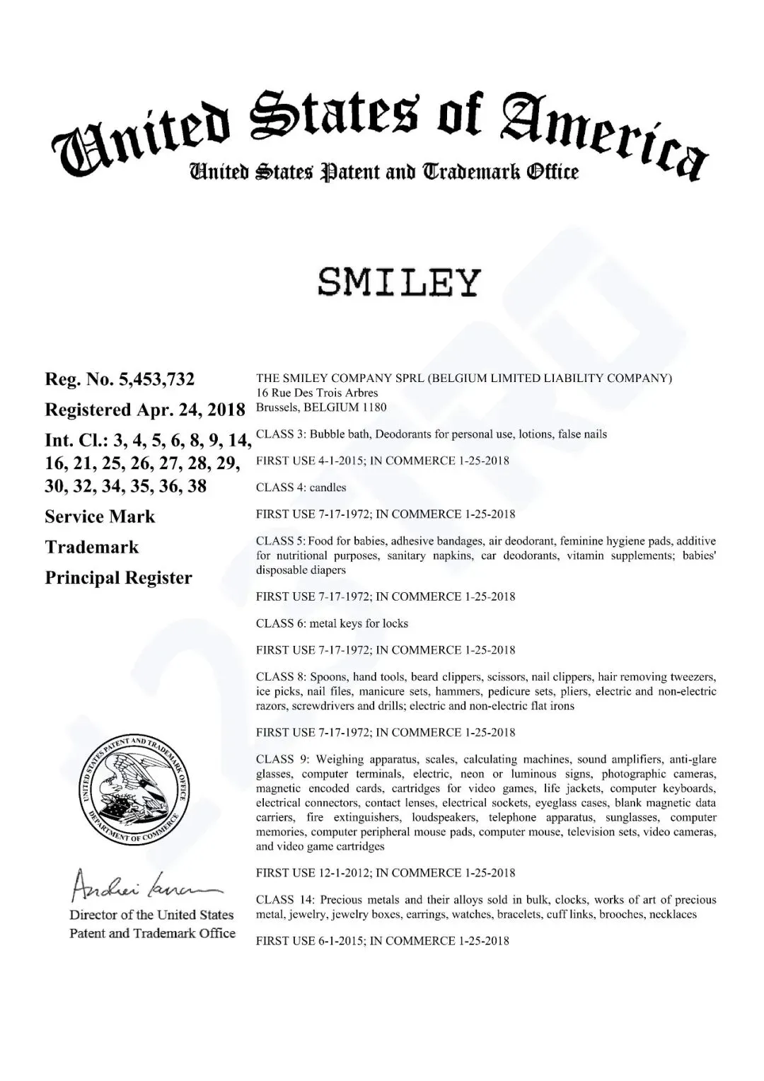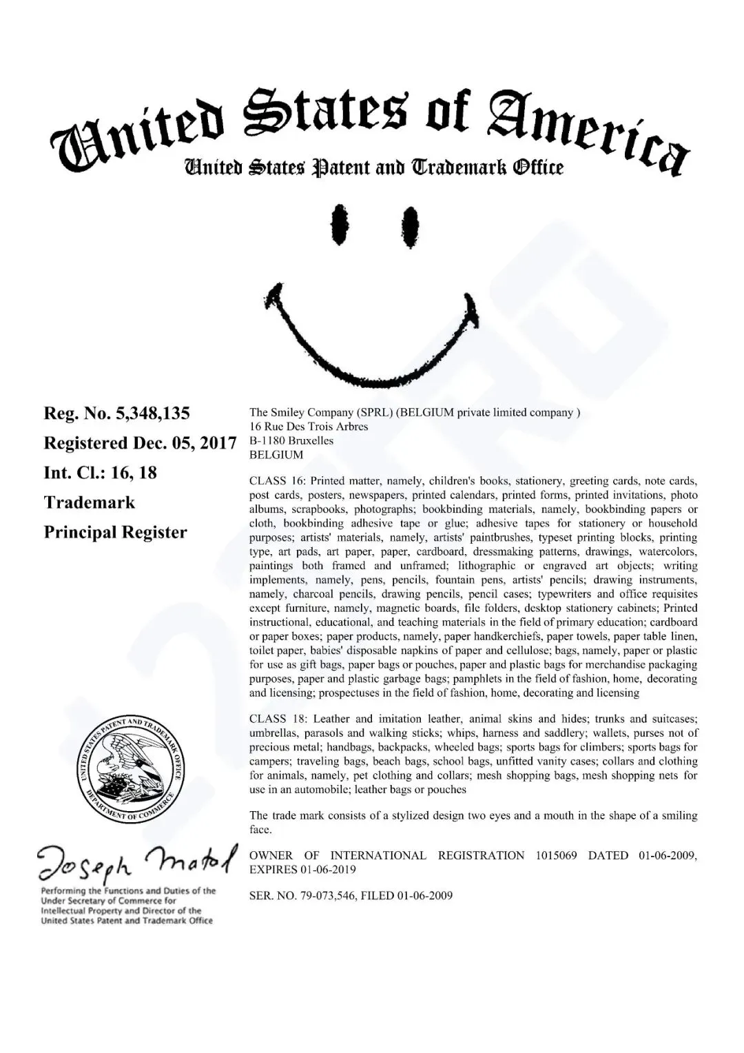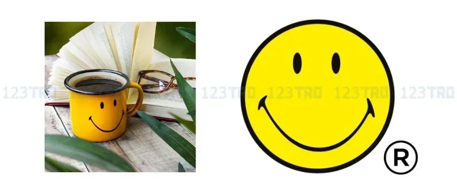 别说“Smiley”这个单词,只要你的产品上有这种笑脸,且在涉案商标的产品范围内,那么侵权的概率就非常大