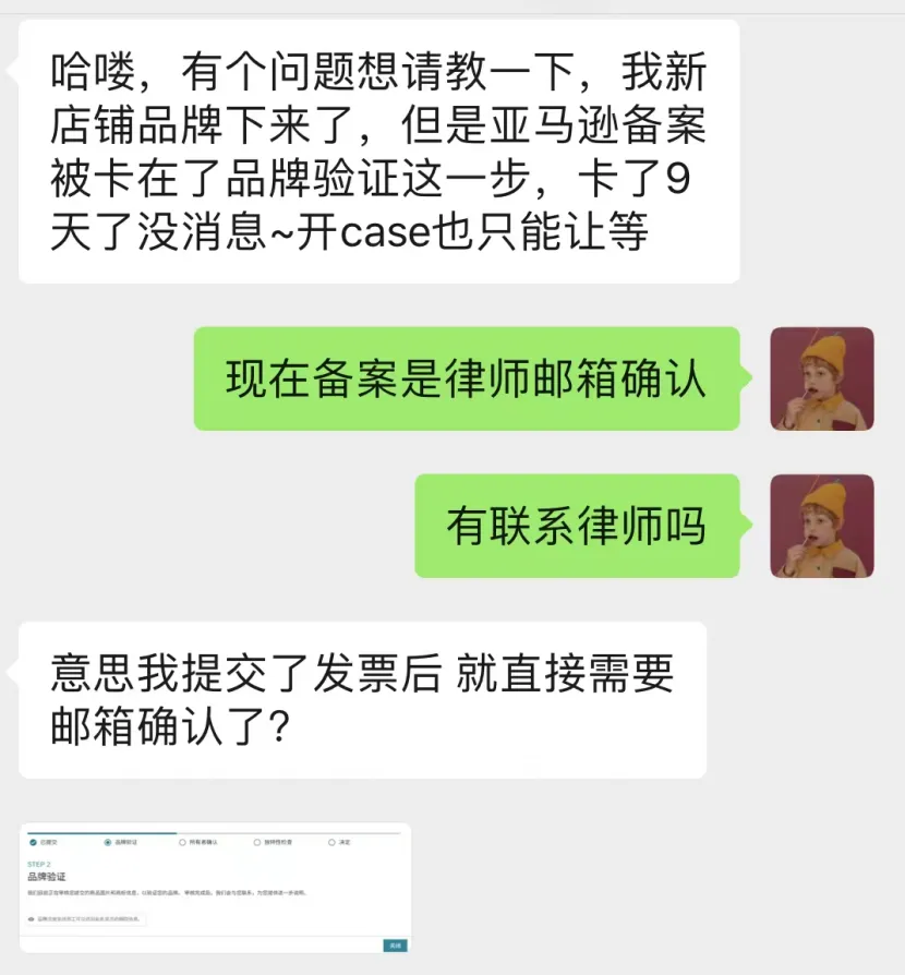 也就是说现在更常见的卡点是亚马逊的验证邮件已经发出,但律师或代理还没点确认,超过时间后,流程自然就停住了。