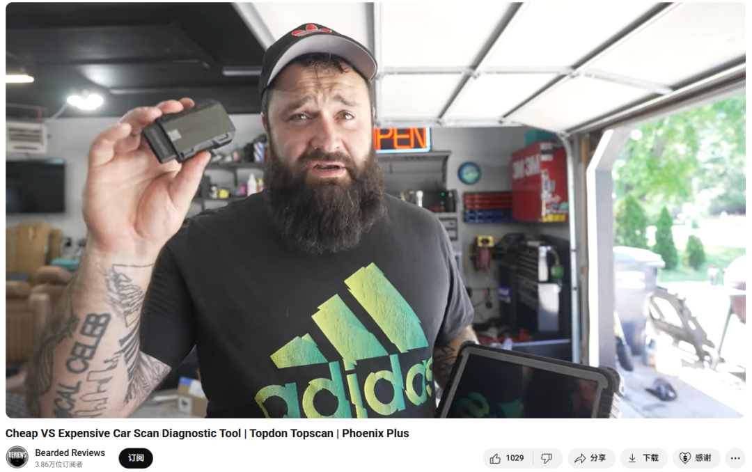 还有个细节:所有视频都不回避 “缺点”。比如 @1mr.niceguy 会说 “基础功能免费,高级功能要订阅”,@Bearded Reviews 对比测评时直言 “50 美元的 TopScan 能满足 99% 用户,只有修老车才需要 1000 美元的 Phoenix Plus”。这种坦诚反而让用户觉得 “真实,不忽悠”。