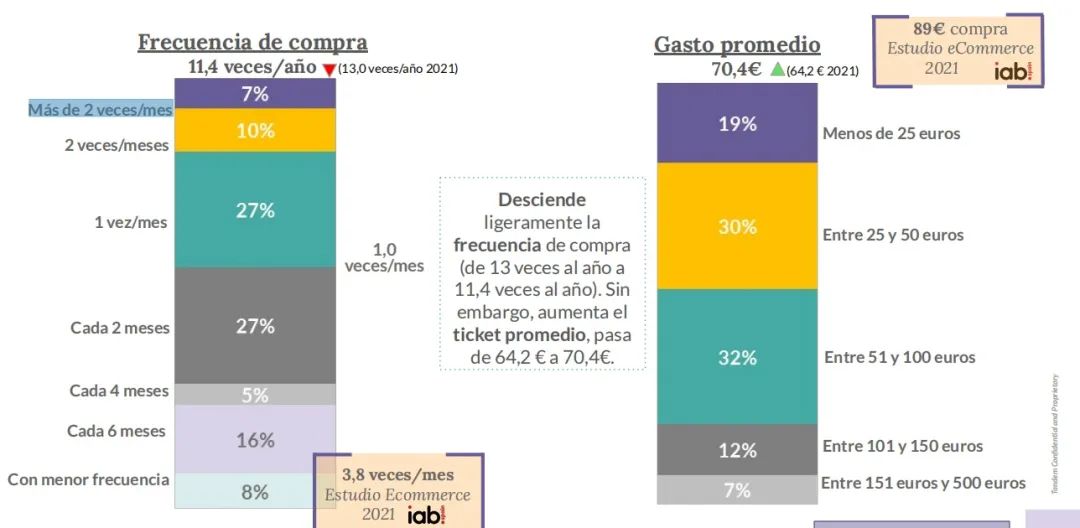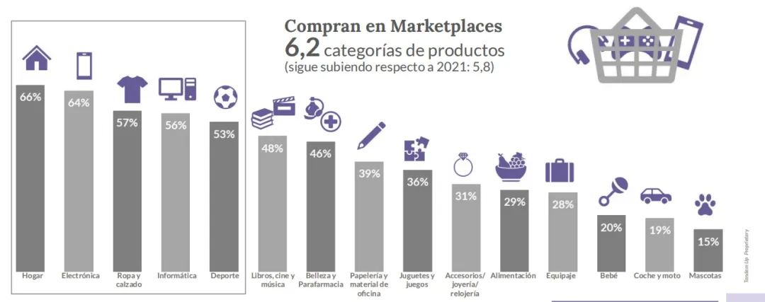 自疫情爆发以来,选择网购的西班牙人持续增加,且新用户占40%。Tandem Up发布的《2022年市场研究》报告中提到,2021年西班牙共有2580万名网购者。年龄在18至70岁的西班牙人口中,有76%的人在网上购买了物品。45至59岁之间的“婴儿潮一代”购买力最强,育有孩子的西班牙家庭网购需求更强烈。