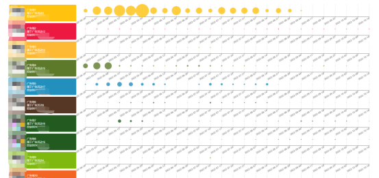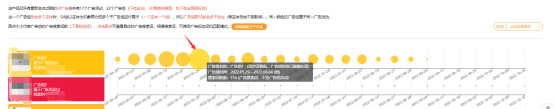 3.把鼠标移动到任意广告组的圆点上,可以看到该广告组的搜索词数量。圆点大小代表广告组的广告搜索词数(不是投放词)。