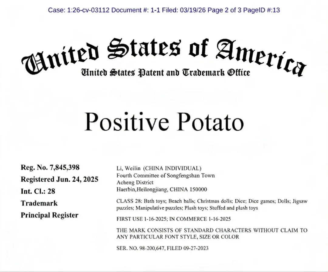 据美国法院官网的最新资料,我们关注到Atlantic代理发起的Positive Potato 积极土豆(商标)【26-cv-03112】;Keith律所代理的Ruediger 《摩西劈海》【26-cv-03092】;Tme律所代理的Stones Throw 《Madvillainy》嘻哈专辑插画【26-cv-00124、26-cv-00125】;Bayramoglu律所代理的Queen Tape 额头贴【26-cv-01372】;Csglaw律所代理的NEW YORK KNICKS 纽约尼克斯队【26-cv-01321】。六起TRO案件详情如下: