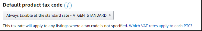 卖家必须选择一个产品税代码或者保持默认设置,由此计算产品在欧盟范围内的增值税税率。
