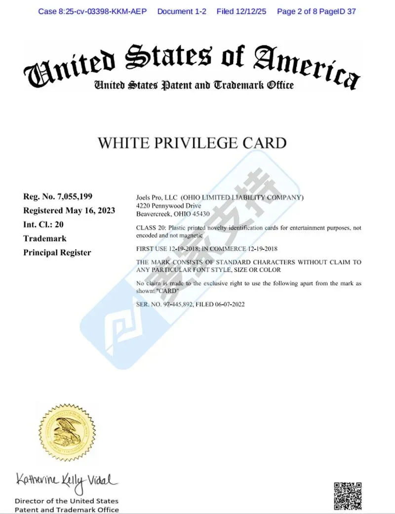 25-cv-03398,White Privilege Card已发起维权,娱乐卡片类卖家注意排查下架!