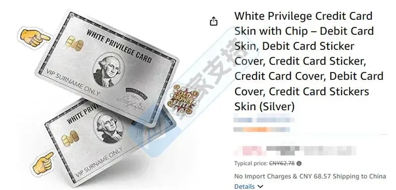 White Privilege Card是Joel Patrick设计一种不具有法律或社会效力,仅用于娱乐目的的塑料印刷式新奇标识卡,通过夸张或戏谑的方式,引发公众对White Privilege白人特权这一社会现象的关注与反思,是一个具有讽刺意味的概念性产物。White Privilege Card通过印制可免排队、优先晋升,或调侃特权已充值等调侃方式给人带来欢乐,深受用户喜爱。
