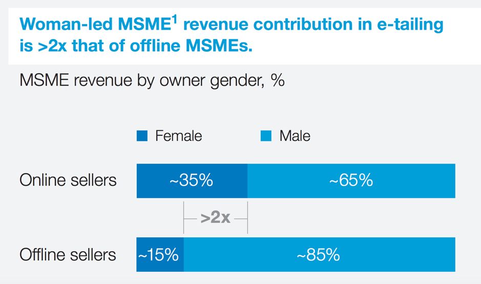 这一现象在电子商务逐渐崛起的印尼也开始显现,据麦肯锡报告《数字群岛:在线商务如何推动印度尼西亚的经济发展》中的数据显示,印尼线上行业中的女企业家约为35%左右,是线下行业(约15%)的两倍多。