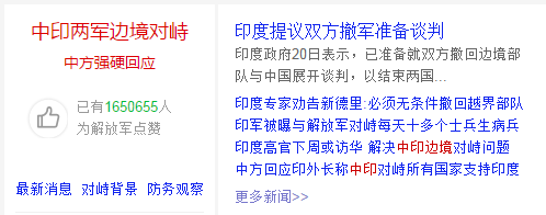 一个多月前,印度军方越过中印已定边境,非法进入中国领土,引发中印两国在边境对峙,局面延续至今。
