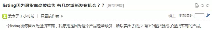 listing被停售因为退货率高,卖家认为是因为该产品经常缺货,所以卖出去的少,有3个退货就成了退货率高的产品。